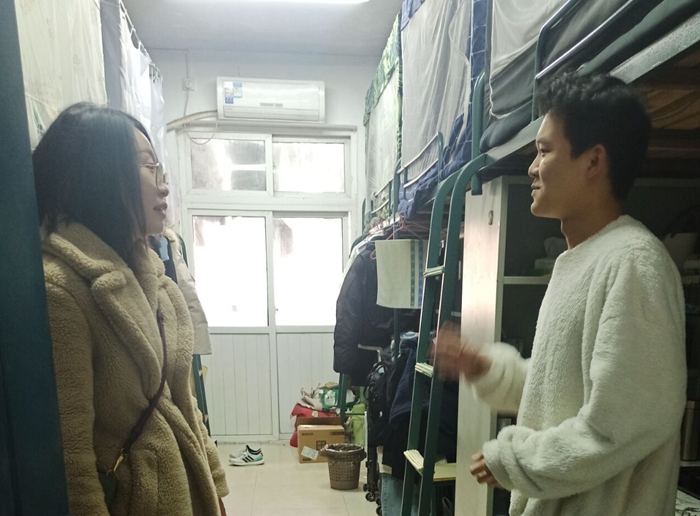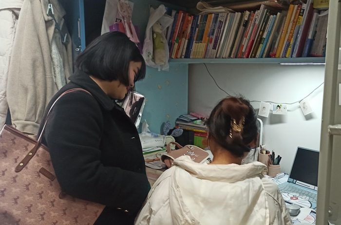 为了全面了解学生学习情况和思想动态,增强工作针对性和实效性,在疫情防控的背景下为学生教育管理工作高校开展,外国语学院辅导员多措并举,走近学生。辅导员走进课堂,认真记录课堂情况,掌握了学生们的到课出勤、听课状态;辅导员走进宿舍,查看学生外出情况和请假制度执行情况,与学生谈心谈话,了解学生公寓各项服务保障情况,督促环境卫生建设,排查整治安全隐患;此外,每名辅导员都通过新媒体平台与所带学生进行交流,传达问候,拉近距离,引导学生树立安全意识,调整生活节奏和心理状态,以饱满热情投入学习生活。