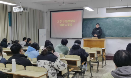近日,文学与传媒学院在教学楼A302举办“文学与传媒学院创新大讲堂”知识讲座活动,创新创业指导老师李明主讲,大创项目立项团队成员参加此次活动。