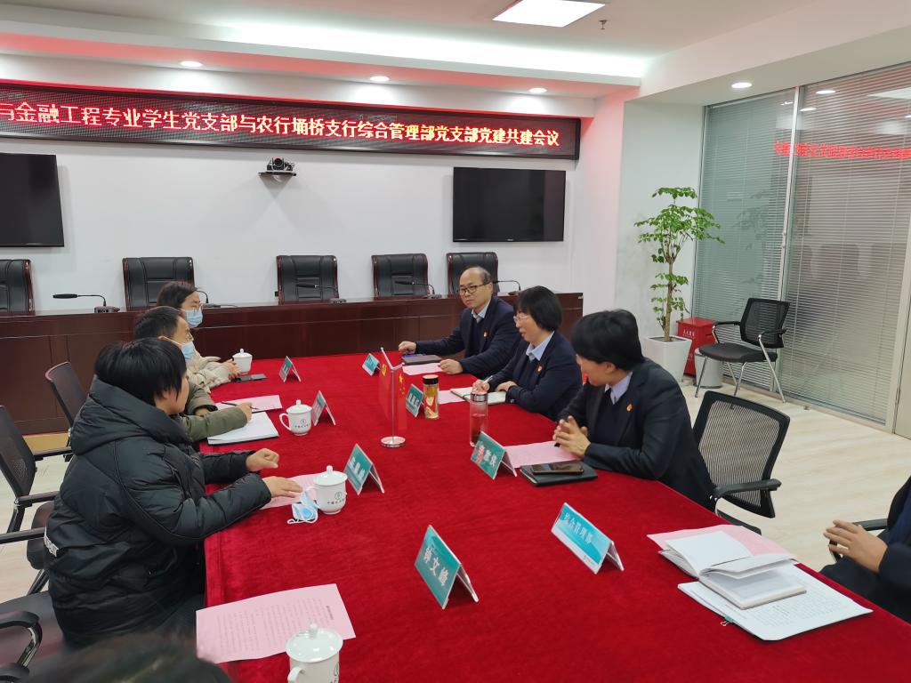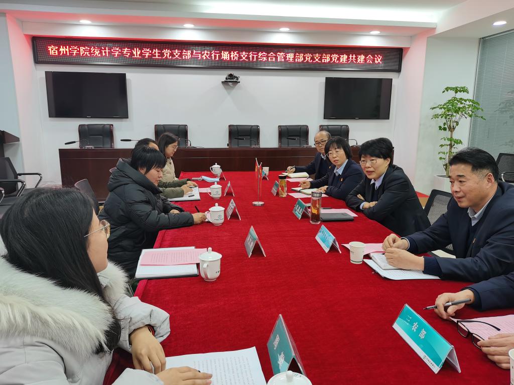为进一步发挥党支部战斗堡垒作用,提升支部服务水平,给师生提供更多的资源,12月20日下午,数学与统计学院党委副书记(临时负责)陈攀峰、党委副书记徐依俭、学生事务管理科副科长钟文峰、统计学专业学生党支部书记高雅、数学与金融工程专业学生党支部书记周樊一行五人前往中国农业银行宿州分行埇桥支行开展党支部共建交流工作。农行埇桥支行党委书记、行长李惠侠及领导班子成员热情接待并参与本次交流。