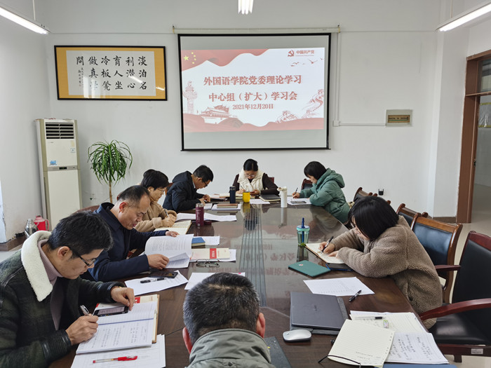 12月20日下午,外国语学院在逸夫楼A318召开了党委理论学习中心组(扩大)学习会。党委委员、科级干部等参加了学习会,会议由党委副书记(临时负责)郝景东主持。