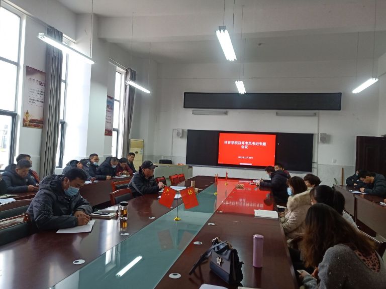 2021-2022学年第一学期期末考试临近,为了进一步规范体育学院的考风、考纪管理工作,确保考试结果的公平、公正性,从而更好地促进体育学院学风建设工作的顺利开展以及人才培养质量的有效提升。12月20日,体育学院在会议室召开了期末考风考纪专题工作会议,本次会议由院长白明主持,全体教职工参加。