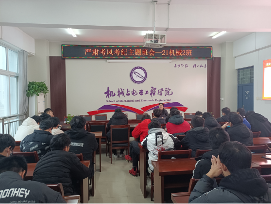 为进一步深入推进教学质量管理,狠抓考风考纪建设,营造良好考风、学风,12月22日,机电学院党委副书记房爱东,全体专职辅导员为所带班级召开严肃考风考纪主题班会。