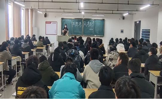 考风考纪作为学校学风建设的重要内容和关键环节,是保证我院专业人才培养质量的必要因素。房爱东向学生强调了学院对考试违纪和作弊的“零容忍”原则,强调每一名学生必须要严以修身,坚决抵制投机取巧、不劳而获的错误想法,要对学校负责、对家人负责、对自己负责。胡晓岩阐述了诚信考试的重要性,指出对于学生而言,重视诚信考试是责任感的体现;诚信应考是道德品格的体现。