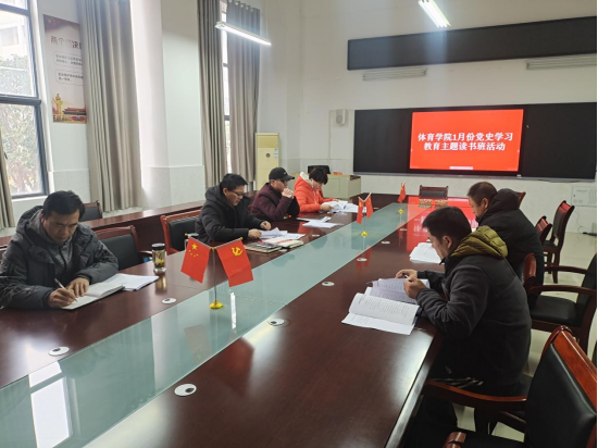 2022年1月4日上午,体育学院党委召开1月份党委理论中心组学习会和党史学习教育主题读书班活动,全体党委委员参加。学习会由党委书记李高主持。
