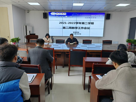 3月2日中午13点,管理学院在实习实训楼C301会议室召开2021-2022学年第二学期第二周教学工作会议,副院长(教学)宋徽、各教研室主任、副主任、相关科级干部及教务人员参加会议,会议由院长韩传龙主持。