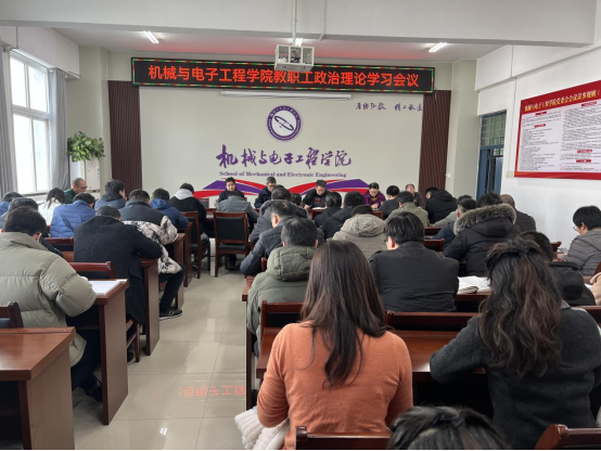3月2日下午,机电学院在工科C楼三楼会议室召开教职工政治理论学习会,机电学院全体教职工参加,会议由党委书记杨杰主持。