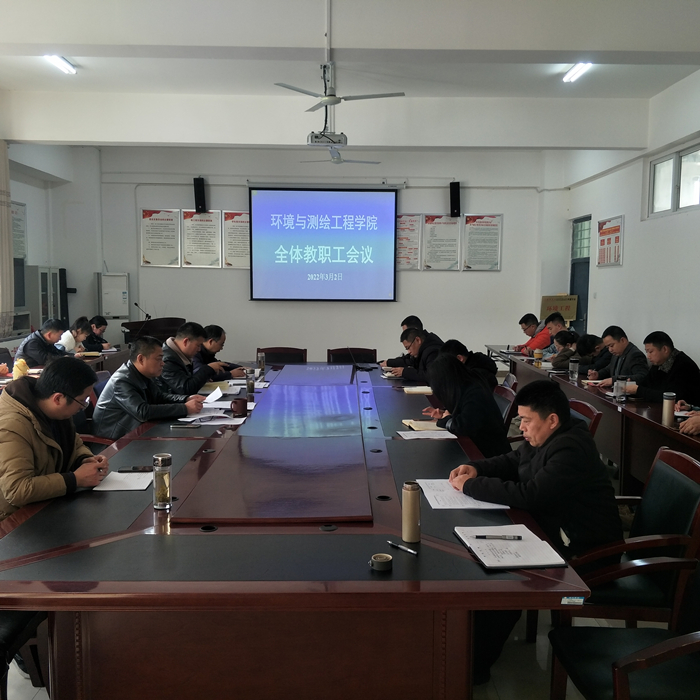 2022年3月2日下午,环测学院在工科楼A315召开全体教职工会议,学院党委副书记(临时负责)胡冰、党委副书记、院长张海洋、副院长徐国伟、副院长李琦及全体教职工参加会议,会议由张海洋主持。