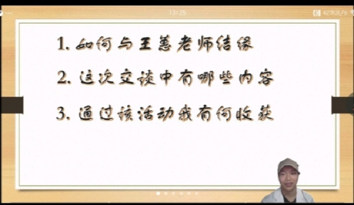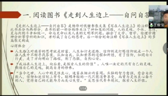 本次活动由于疫情原因于线上举办,通过生物与食品工程学院“腾讯会议”参与。活动伊始,由负责人宣布活动流程,然后参与经验交流会的同学在线上分享自己的社会实践经验,分为“家庭劳务心得”“母校回访”“读书报告”“志愿服务”等专题。线上的观众都认真的听着同学们分享的经验,分享结束后,积极的发表自己的意见和感受。