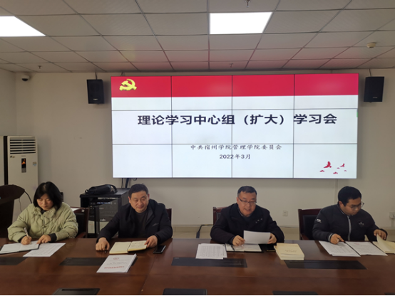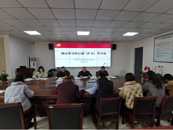 3月22日,管理学院在实训楼C301召开理论学习中心组(扩大)学习会。院党委书记蔡若愚、院长韩传龙、党委副书记张增林、副院长宋徽和科级干部、支部书记参加会议。会议由蔡若愚主持。