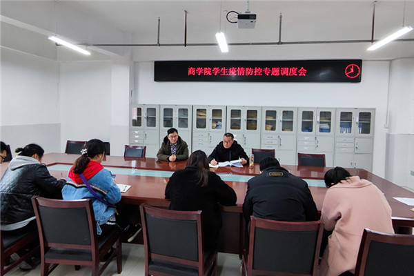 3月22日上午,商学院在实训楼B503会议室召开学生疫情防控专题调度会。院党委书记肖良、党委副书记周亚和全体辅导员(班主任)参加会议,会议由周亚主持。