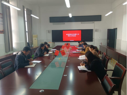 3月24日,体育学院召开三月份第二次学生工作会议。体育学院处级干部、分团委书记、党政办主任、学生事务科科长、组织员、辅导员,会议由李高主持。