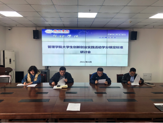 为深入推进创新创业教育改革,加强学生创新创业意识和实践能力培养,不断提高人才培养质量,根据《宿州学院大学生创新创业实践活动学分认定管理办法(修订)》(校教字[2022]4号)等文件精神,为进一步细化、落实大学生创新创业实践活动学分认定工作,4月4日,管理学院在实习实训楼C301会议室召开大学生创新创业实践活动学分核定标准专题研讨会,学院党委书记蔡若愚、副院长(教学)宋徽、党委副书记张增林以及相关教学人员参加会议,会议由院长韩传龙主持。