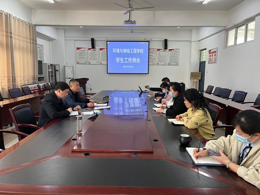 4月6日下午,环测学院在工科楼A315会议室召开四月份第二次学生工作例会。学院党委副书记(临时负责)胡冰,党委副书记、纪委书记李建新及全体辅导员、班主任参加会议。