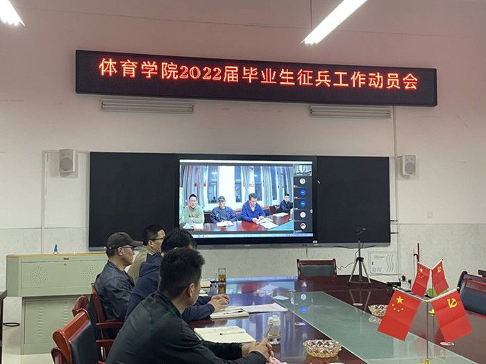 为激发体育学院2022届毕业生参军报国、献身国防热情,动员鼓励更多毕业生报名参军入伍,4月6日晚,体育学院召开“2022届毕业生征兵工作动员会”视频会议,院党委书记李高,党委副书记、院长白明,体育党委副书记王德玉,学生事务管理科,毕业班辅导员,学院2022届毕业生参会。会议由李高主持。