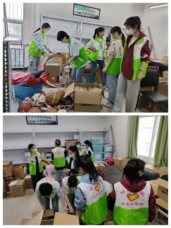 活动当天,志愿者们提前在指定位置集合,认真听领队讲解了此次活动的注意事项和任务。活动中,领队对活动室所打扫区域进行分工安排,学生志愿者根据安排将活动器材分类摆放并贴好标签,按照规定将破损及陈旧等器材进行集中的处理;各自拿着所分配到的劳动工具进行打扫,着重清理角落垃圾以及擦拭桌椅板凳;针对器材室中常用器材进行清扫及擦拭,并对灰尘沉积的角落等位置进行彻底清扫。大家充分发扬“不怕苦、不怕脏、不怕累”的志愿服务活动精神,仔细拾余留垃圾,热情高涨、干劲十足。经过两天时间,在大家的共同努力下,活动室物品摆放整齐有序,焕然一新。