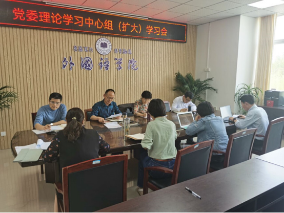 4月11日下午,外国语学院在逸夫楼A318会议室召开了党委理论学习中心组(扩大)学习会,学院党委委员、科级以上干部及教研室主任参加,会议由党委书副书记(临时负责)郝景东主持。