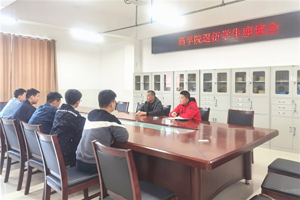 4月6日下午,商学院在实训楼B503会议室召开退伍学生座谈会,商学院党委副书记、纪委书记周亚和学院5名退伍学生代表参加了座谈会,会议由学生事务管理科副科长孙茂顺主持。