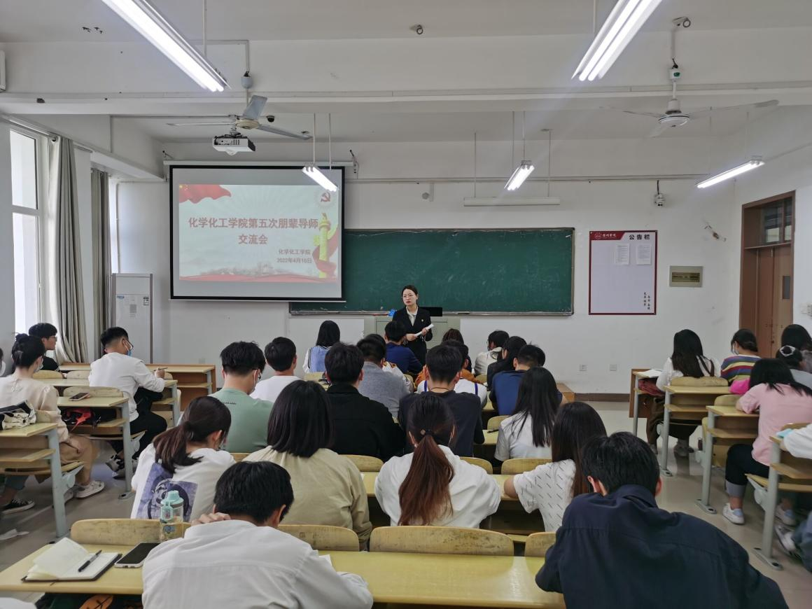 为进一步强化“我为同学做实事”主题实践活动,加强学风建设,发挥朋辈导师制在学生自我管理中的重要作用,4月13日下午,化学化工学院在逸夫楼B206开展第五次朋辈导师交流会,本次会议由辅导员阚淑锦主持,学院全体朋辈导师参加。