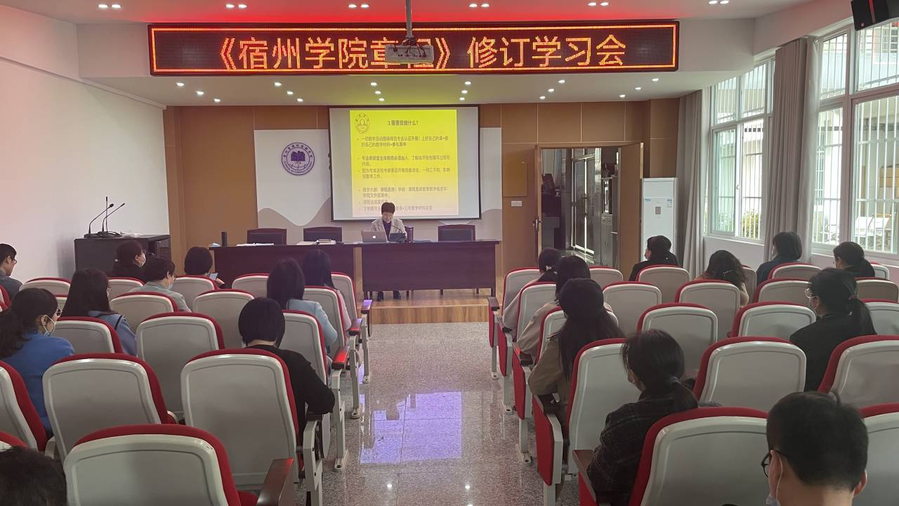 4月13日下午,外国语学院召开《宿州学院章程》修订学习会。学院党政班子成员及全体教职工参加了会议,会议由院长张雁凌主持。