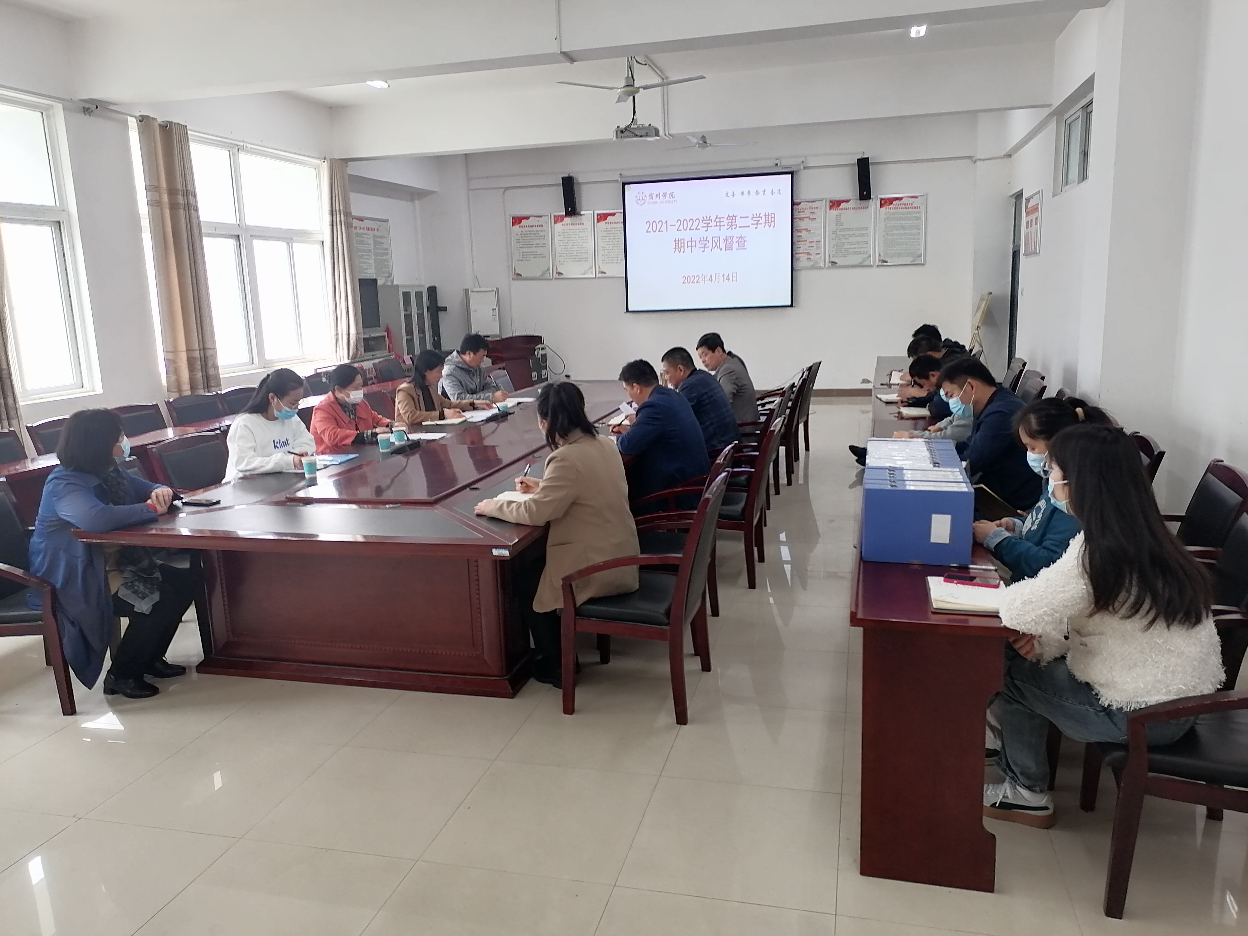 为落实“立德树人”根本任务,有效促进环测学院学风建设工作,2022年4月14日上午,学校学风专项督查工作小组王红艳一行赴环测学院开展2021-2022学年第二学期期中学风督查,环测学院党委副书记(临时负责)胡冰,党委副书记、院长张海洋,党委副书记,教学副院长,科级干部及全体辅导员参加会议。