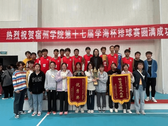 4月13日下午,宿州学院第十七届“学海杯”排球赛决赛在新体育馆篮球场圆满落幕。机电学院男子排球队一路不畏强手,团结拼搏,发挥稳定,夺得排球赛冠军。机电学院女子排球队获得优秀奖,机电学院获得体育道德风尚奖。