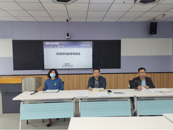 4月13日下午,管理学院在实训楼C504召开师德师风教育专题会。院长韩传龙、党委副书记张增林、副院长宋徽和全体教师参加会议。会议由韩传龙主持。