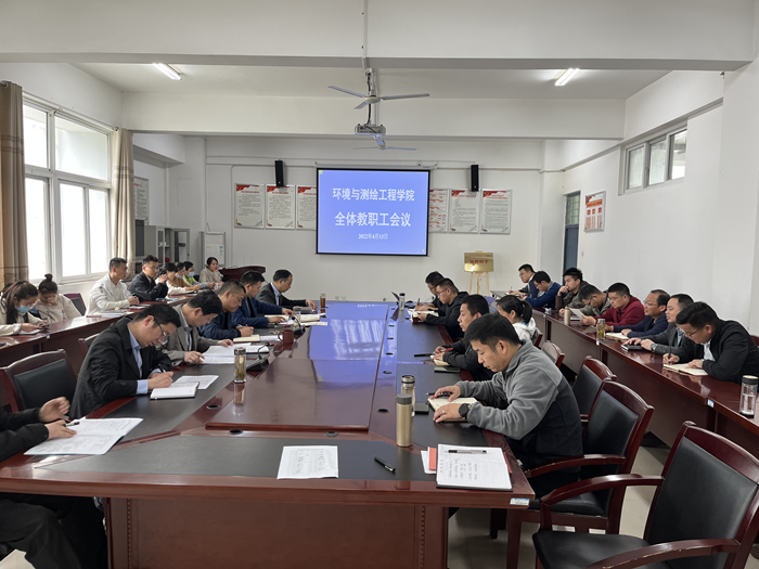 4月13日下午,环测学院在工科楼A315召开全体教职工会议,学院党委副书记(临时负责)胡冰,党委副书记、院长张海洋,党委副书记,纪委书记李建新,教学副院长徐国伟,科研副院长李琦及全体教职工参加会议,会议由张海洋主持。