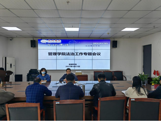 根据省教育厅、学校依法治校工作要求,4月13日下午,管理学院在实习实训楼C楼301会议室召开法治工作专题会议。副院长(教学)宋徽、各教研室主任、法治工作联络员林啸啸及全体教师参加会议,会议由院长韩传龙主持。
