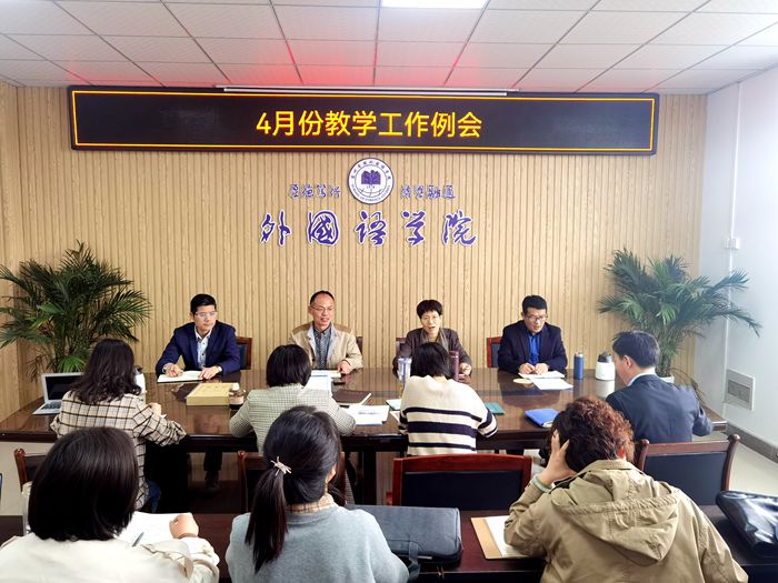 4月18日下午,外国语学院在逸夫楼A318召开了4月份教学工作例会,会议由外国语学院院长张雁凌主持,各教研室主任和教学管理人员参会。会议议题主要围绕业务学习、期中教学检查、期中教学巡视、2022届本科毕业论文答辩等四个方面展开。