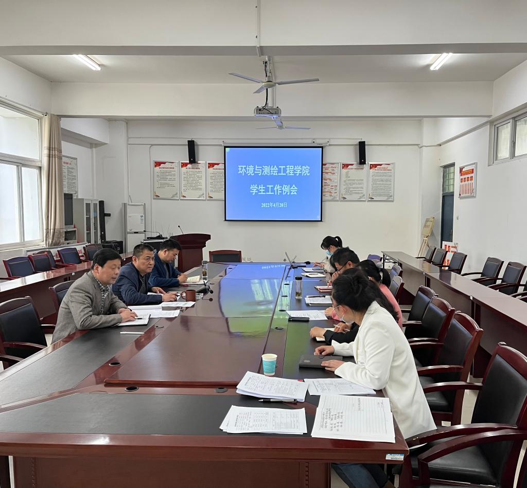 4月20日下午,环测学院在工科楼A315会议室召开四月份第四次学生工作例会。学院党委副书记(临时负责)胡冰,党委副书记、院长张海洋,党委副书记、纪委书记李建新及全体辅导员参加会议。
