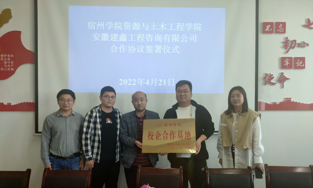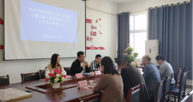 4月21日下午,安徽建鑫工程咨询有限公司总经理苏奎一行莅临我院开展合作交流,双方签订了校企合作及课程共建协议。学院副院长冯松宝、后勤与基建管理处副处长刘发明及土木相关教师出席会议,会议由土木教研室主任牛智勇主持。