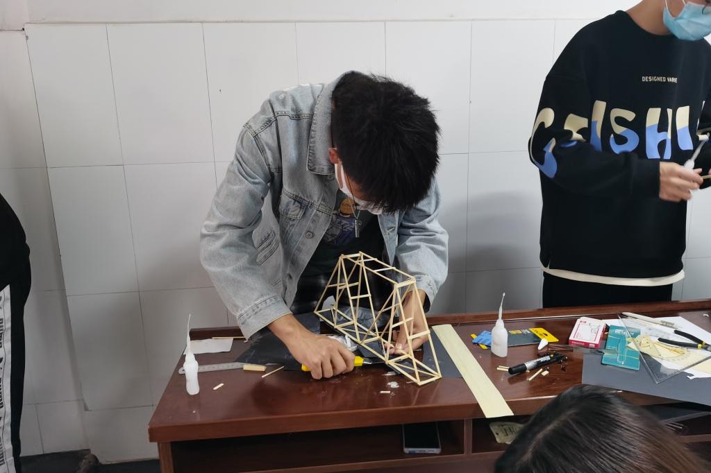 本次比赛共有25组参赛选手,规定选手以团队形式参赛,所有参赛队伍在规定时间内使用提供的材料完成桥梁结构的设计与制作。比赛过程中,各队充分发挥了动手实践能力和团队合作能力,分工合作,配合默契。参赛选手们根据各自的结构设计,进行构件制作与搭建,每个参赛队伍的桥梁设计都各具特色,现场气氛热火朝天,井然有序。规定时间结束后,各个参赛队伍将作品交予评委老师处,并帮助整理比赛场地、清理剩余废料。比赛最后,评委老师对参赛作品的外观、实用和负载三方面进行打分和评价。最终第17组、第7组的作品取得了一等奖,另有4组获得二等奖、6组获得三等奖。