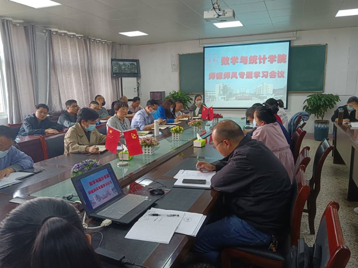 为纵深推进教师师德师风建设,提高教师队伍整体素质,创建优良校风、教风和学风,提升教学质量和水平。4月22日,数学与统计学院在教学楼二楼会议室召开师德师风专题学习会议。会议由党委副书记(临时负责)陈攀峰主持,全体教职工参加。