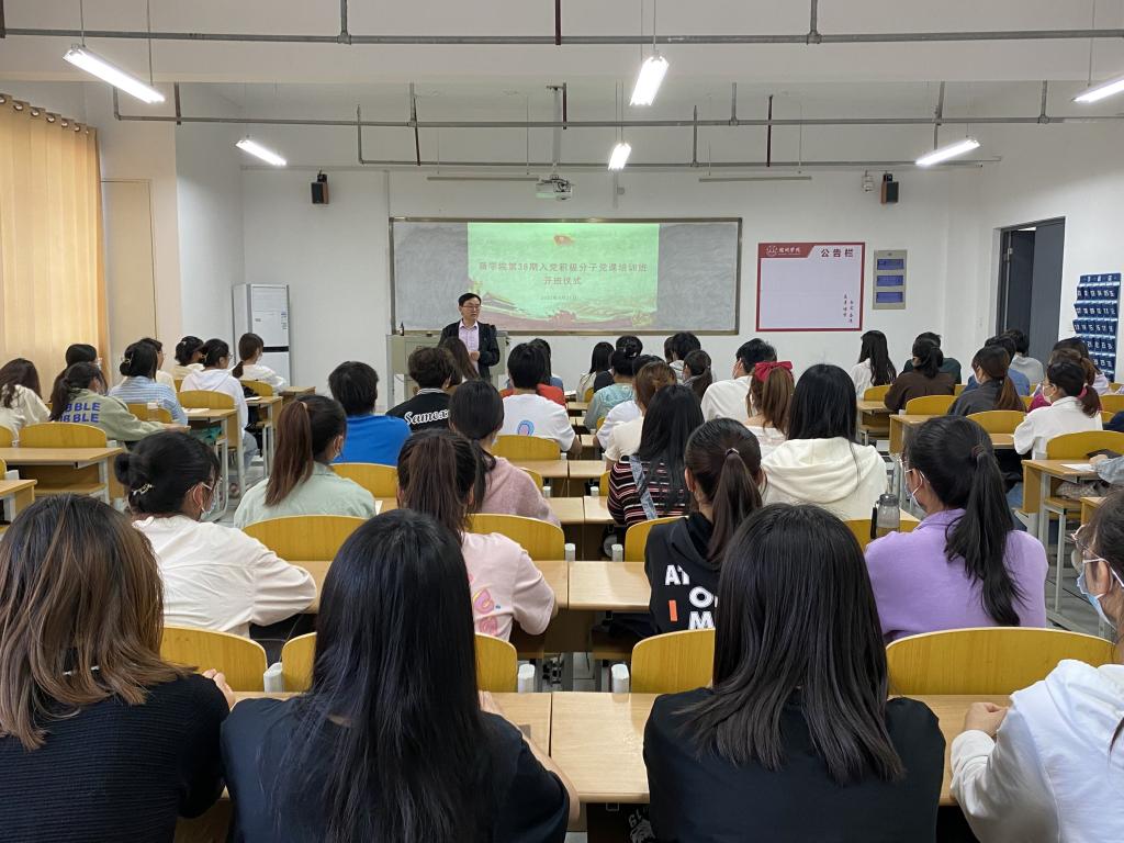 4月21日下午,商学院党委在实训楼B313教室举行第38期入党积极分子培训班开班仪式,党委书记肖良、专职组织员(党务秘书)张锐锐、党建助理队成员及100名入党积极分子参加了开班仪式。