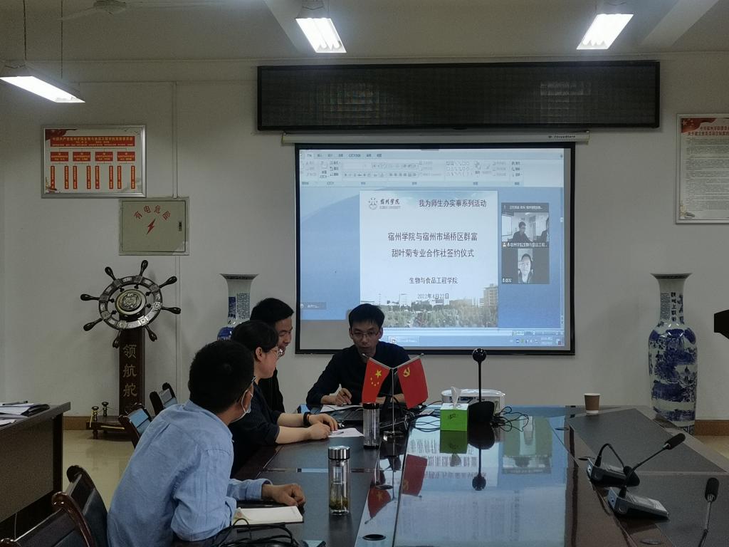 为进一步深化校企合作,开展应用研究和成果转化,服务地方产业发展和经济建设,4月22日下午,生工学院与宿州市埇桥区群富甜叶菊专业合作社董事长陈军在线上开展合作交流,双方签订了校企合作协议书。生工学院党委副书记、院长张兴桃,副院长翟科峰及参与对接的鲍妮娜博士和王小雷博士出席了此次线上签约仪式。
