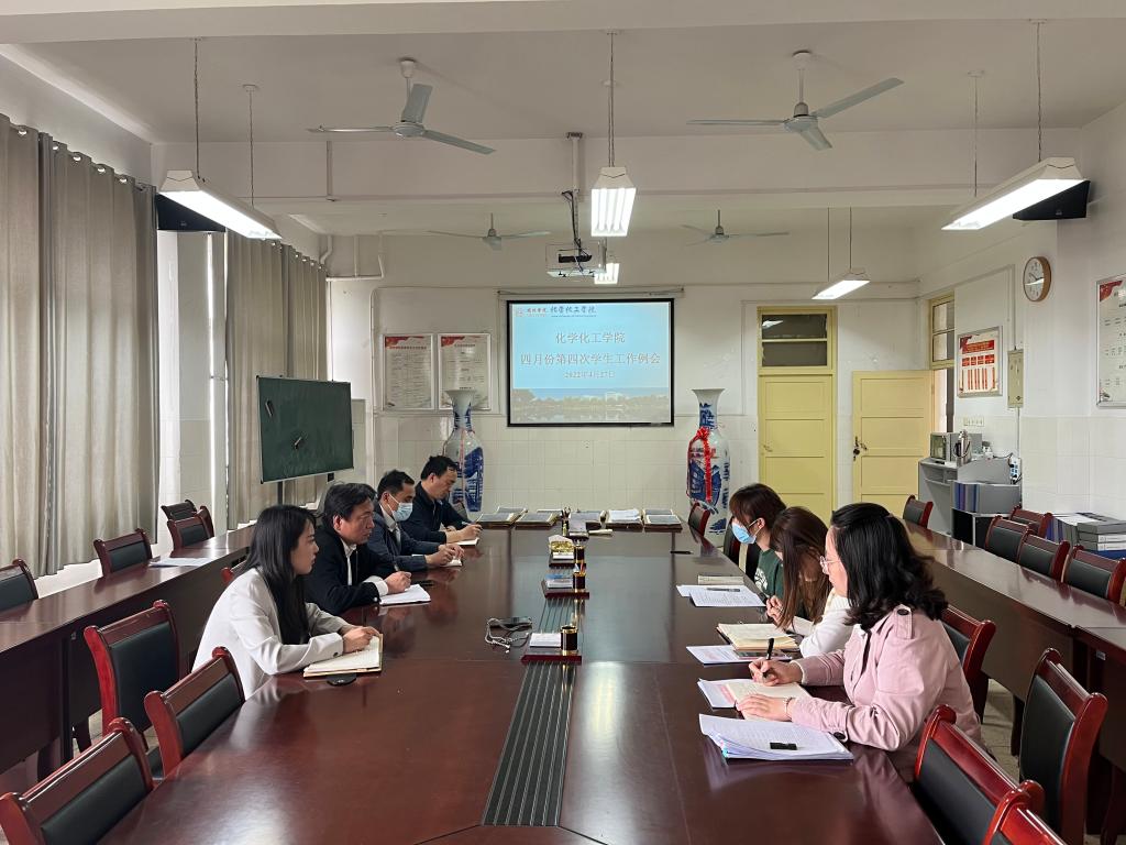 4月27日上午,化学化工学院在学院会议室召开四月份第四次学生工作例会。学院党委副书记(临时负责)史洪伟、党委副书记刘茜、副院长王聪、副院长张克营及全体辅导员参加会议。会议由史洪伟主持。