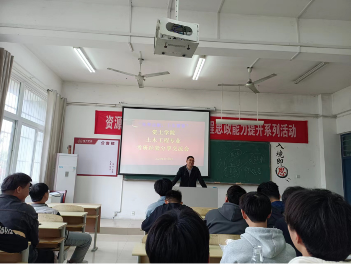 4月30日下午,资源与土木工程学院土木教研室成功召开“筑梦远航,不负青春”—土木工程专业考研经验分享交流会。教研室主任牛智勇主持活动,胡洋博士和卢莹老师参加。交流会邀请了六名18级中具有代表性的拟录取研究生(赵海辉,考取中国矿业大学;胡金涛,考取东北林业大学;付紫涵,考取广西大学;闫康行,考取安徽理工大学;杜苏永,考取安徽理工大学;沈永辉,考取安徽理工大学)以及一名17级二战考取福州大学的同学(徐竹芳,线上宣讲)前来分享经验,40多名19级正在备考的同学前来交流学习。