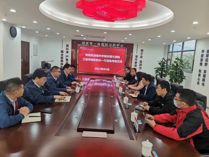 会上,首先宿州华电公司领导介绍了参会人员、公司状况以及项目需求,随后张海洋介绍了环测学院的四个专业概况,重点分析了学院不同科研优势特长,学院相关教师有能力为宿州华电公司提供不同方面的技术支持。其他参会教师在会议上也详细介绍了与项目相关的研究方向。经过洽谈,双方在深度优化用水及水污染防治改造、脱硝还原剂液氨改尿素工程以及粉煤灰的资源化利用等项目方面达成了合作共识,期望共同进行科研和技术转化。会后在华电公司领导及工作人员的带领下,环测学院一行博士实地参观了华电公司。