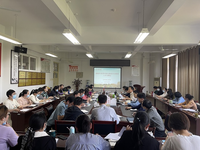 为深入贯彻落实党中央、国务院关于安全生产工作的决策部署和党的十九届六中全会精神,确保新冠肺炎疫情常态化防控下高等学校实验室有序运行,保障师生人身安全和校园稳定,落实《教育部办公厅关于开展加强高校实验室安全专项行动的通知》(教科信厅函〔2021〕38号)、《教育部办公厅关于组织开展2022年高等学校实验室安全检查工作的通知》(教发厅函〔2022〕11号)和全国高等学校实验室安全工作会议的部署,生物与食品工程学院于2022年5月4日在会议室召开2022年高校学校实验室安全检查工作部署会。