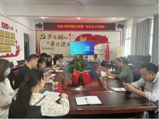 5月6日下午,信息工程学院在工B315会议室召开5月份第一次学生工作例会。会议由信息工程学院党委副书记、纪委书记吴孝银主持,信息工程学院组织员(副处级)黄永刚和全体辅导员(班主任)参加了会议。
