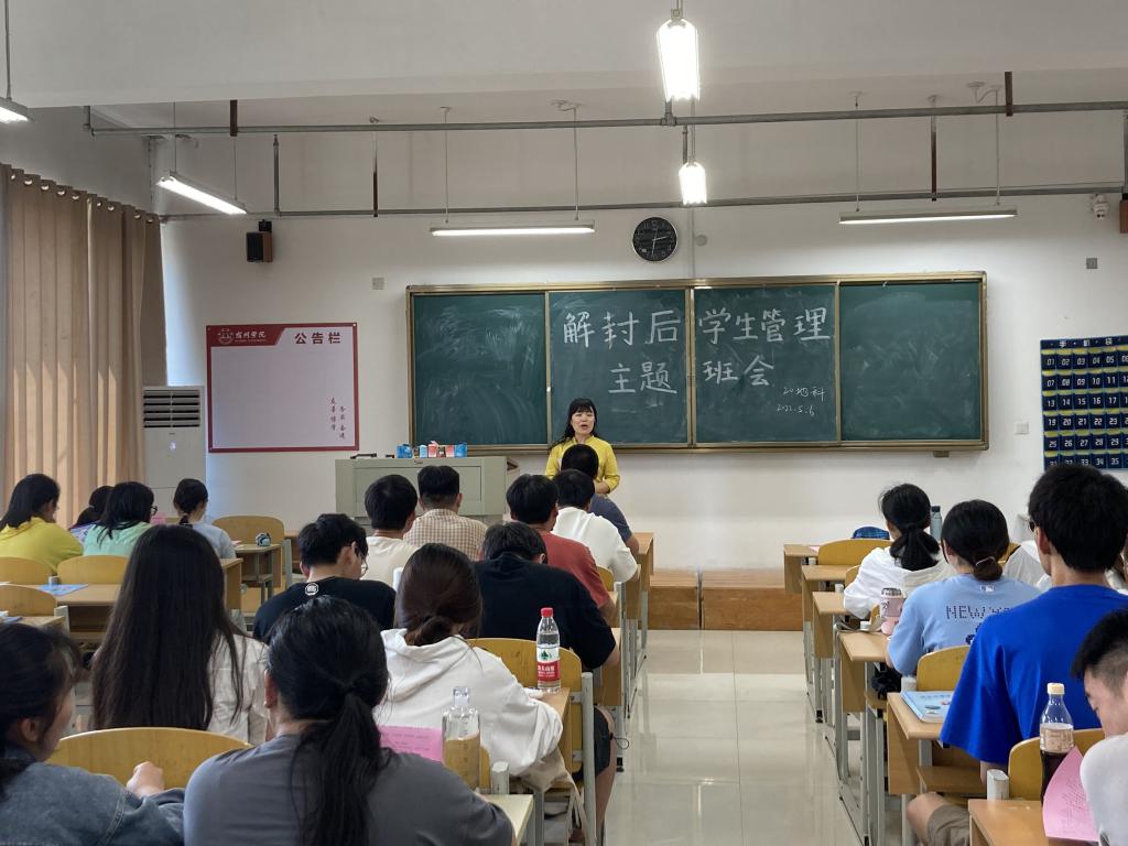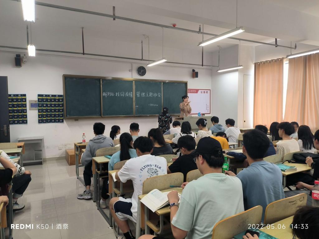 根据宿州市新冠肺炎疫情防控应急指挥部办公室《关于有序解除校园封闭管理的通知》,结合学校通知精神及学院会议精神,5月6日,环测学院各班级通过线上线下相结合的方式组织召开解封不解防学生管理主题班会,班会由辅导员组织,全体学生参加。