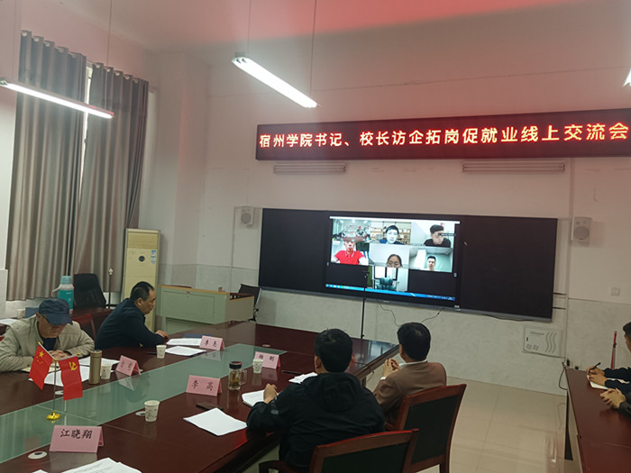5月10日,体育学院院举办“宿州学院书记、校长访企拓岗促就业”线上交流会。宿州学院副校长李亮、招生就业处处长杨刚、体育学院领导班子、学生事务管理科、毕业班辅导员、各企业代表参加视频会议,会议由李高主持。