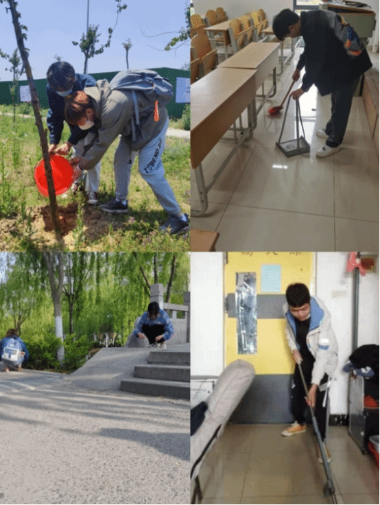 系列活动包括各班级开展主题班会、全国劳模报告会和主题讲座、美丽校园守护者活动、寝室卫生打扫、维护校园树木等。通过视频、演讲等多种形式开展“劳动教育”主题班会,教育引导学生崇尚劳动、尊重劳动;组织学生聆听劳动教育主题讲座,学习劳模先进事迹,潜移默化中激发学生的劳动意识,培养多劳动、爱劳动的优秀品质;开展美丽校园守护者活动,在食堂、珍珠湖、操场等公共场所捡拾垃圾、打扫卫生,保持校园卫生的干净整洁,体验环卫工作者的辛劳,帮助学生养成保持校园公共场所卫生的习惯;拿起扫帚、抹布和拖把,进行桌面整理、地面清洁、擦窗户等寝室大扫除活动,挥洒劳动汗水,体味劳动的艰辛,收获劳动的快乐,真正理解劳动的内涵;还有部分同学对校园树木进行浇水、除草,通过亲身劳动体验维护一草一木实属不易,养成尊重劳动成果、尊重劳动者的意识。
