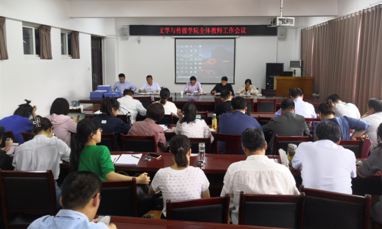 5月18日下午,文学与传媒学院在教A303召开全体教师工作会议,党委书记杨文艺,党委副书记、院长张德岁,党委副书记、纪委书记刘影,副院长李娟,副院长满建及全体教师参会。会议由张德岁主持。