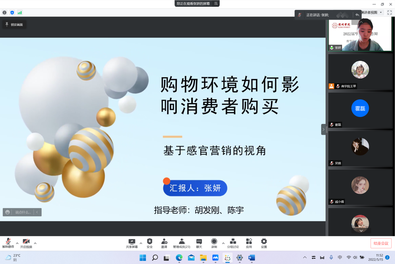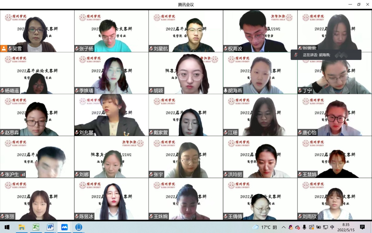 5月18日下午开展了第二批答辩工作。对特殊情况未能参加第一批答辩的本专业学生和2022届会计学双学位共121名毕业生进行线上答辩。