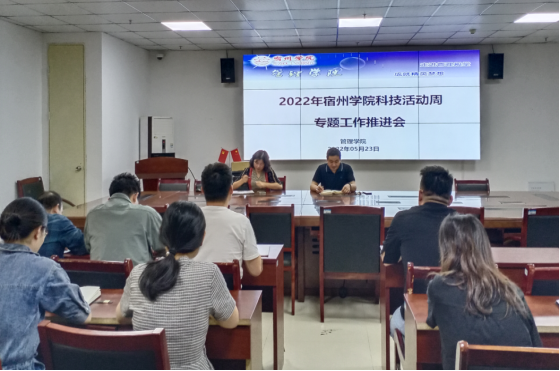 为加快推进科技规划政策扎实落地,广泛宣传科技创新成果,根据安徽省科学技术厅、中共安徽省委宣传部、安徽省科学技术协会《关于举办2022年安徽省科技活动周的通知》,宿州学院科研处等相关文件精神,管理学院结合学院工作实际情况于2022年5月23日下午在实习实训大楼C310召开“2022年宿州学院科技活动周”工作推进会。副院长宋徽、相关职能科室负责人和各专业教研室主任参加会议,会议由院长韩传龙主持。