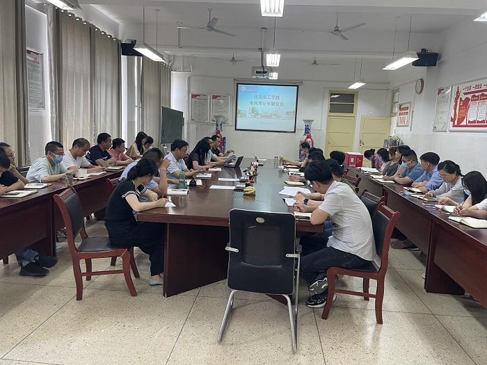 为了进一步加强考风考纪,营造良好的学习氛围和公平竞争环境,增强学生诚信意识,避免考试违纪现象发生,5月24日,在化学化工学院会议室召开了2021-2022学年第二学期期末考试考风考纪专题会议。会议由化学化工学院副院长王聪主持,会议采用线下、线上同时进行的方式,全体教师参加了会议。