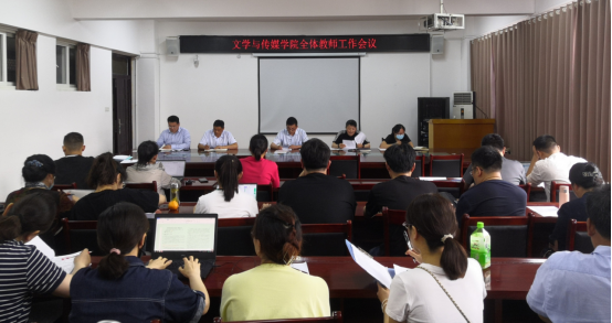 5月25日下午,文学与传媒学院在教A303召开全体教师工作会议,党委书记杨文艺,党委副书记、院长张德岁,党委副书记、纪委书记刘影,副院长李娟,副院长满建及全体教师参会。会议由张德岁主持。