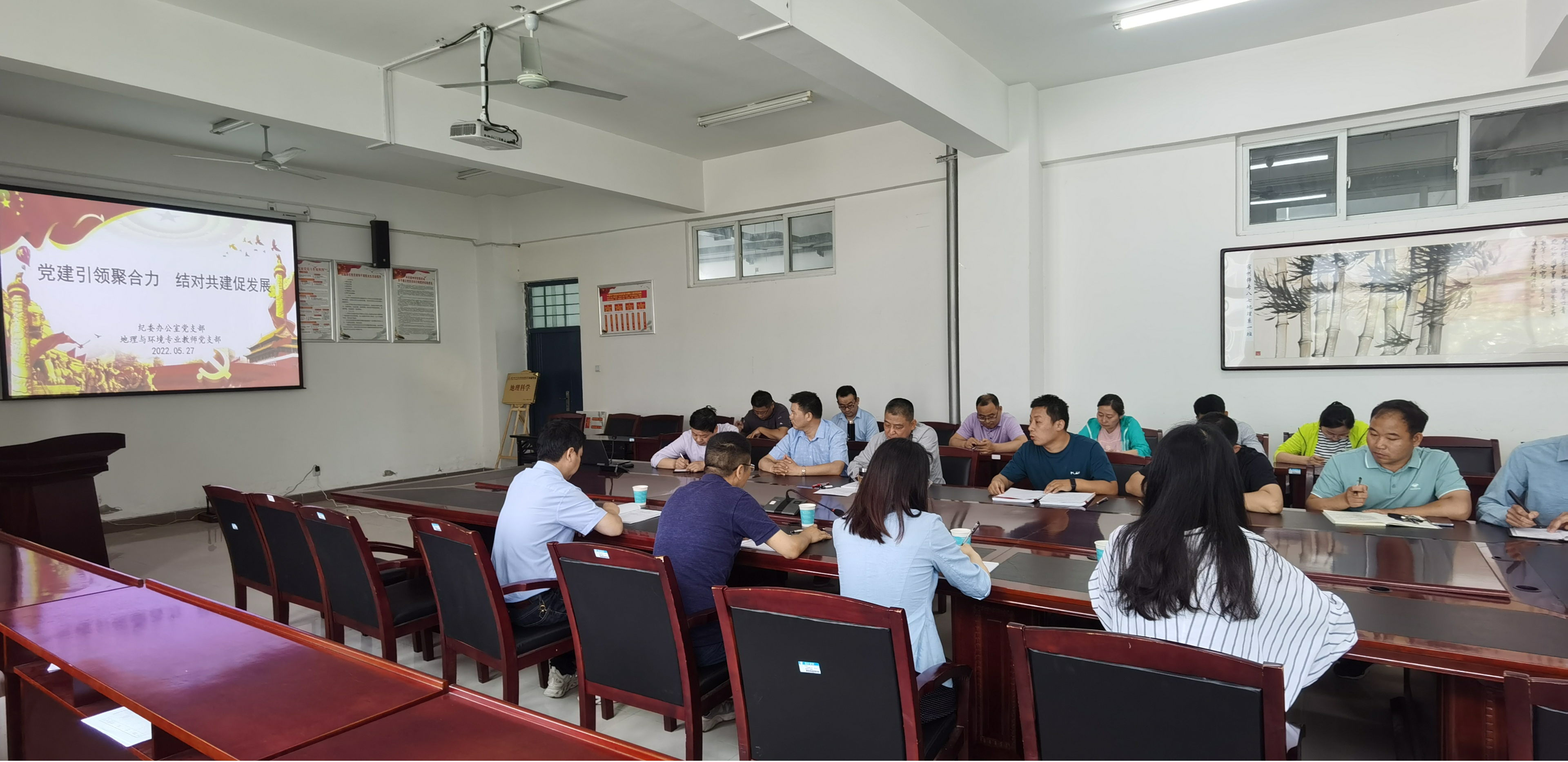 5月27日上午,纪委办公室党支部和地理与环境专业教师党支部在环境与测绘工程学院会议室开展“党建引领聚合力结对共建促发展”活动,纪委办公室党支部党员和地理与环境专业教师党支部党员参加。