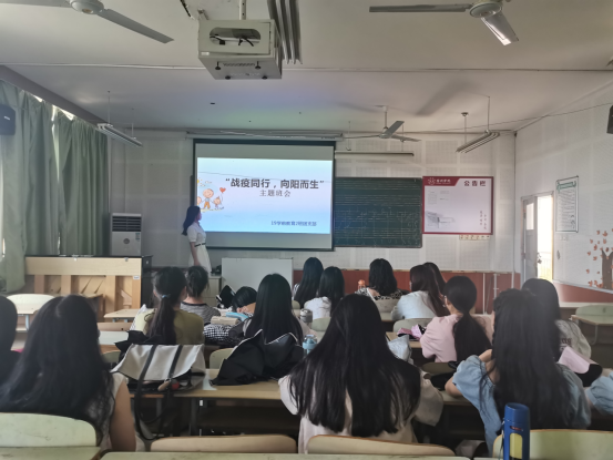 为进一步落实《教育部办公厅加强学生心理健康管理工作的通知》(教思政厅函〔2021〕10号),加强音乐学院疫情封控情况下大学生心理健康教育工作,积极引导学生关注心理健康,关注自身心灵成长。5月16日——5月27日,音乐学院各班级组织召开“战疫同行,向阳而生”心理主题班会。